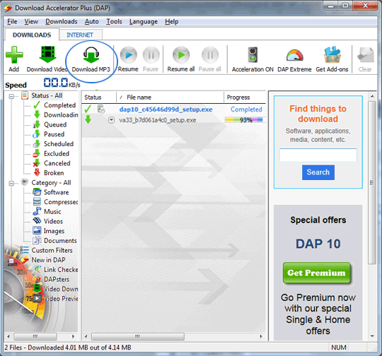- Fastest download speeds: DAP ensures that files are downloaded at the maximum speed possible, using multiple connections to different file segments.