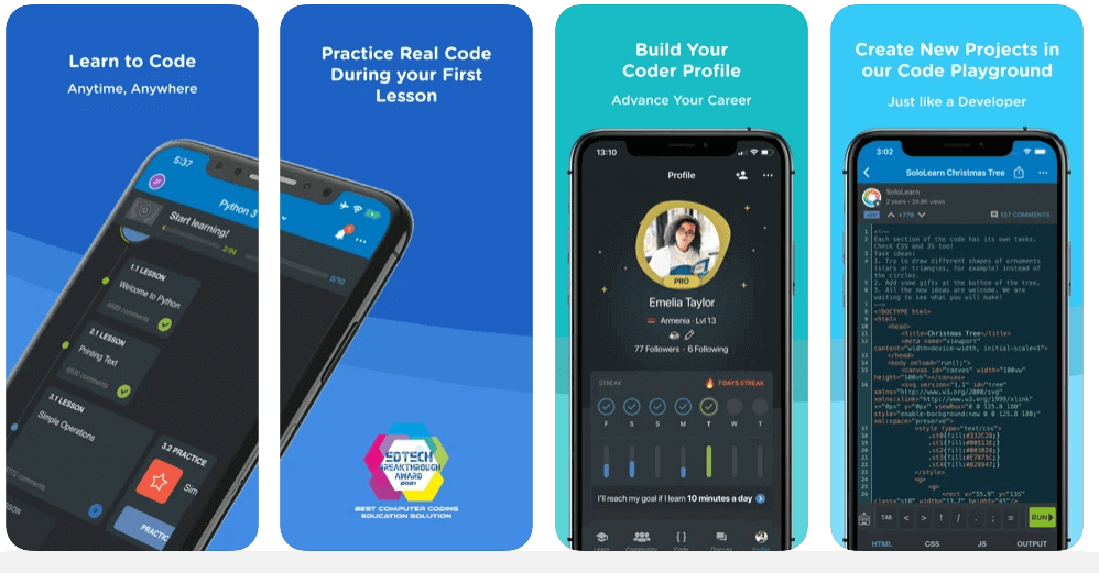 Screenshots of SoloLearn free Coding App For Kids
